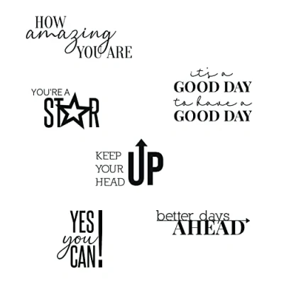 Looking for a new addition to your stamp collection? Never be lost for words with Everyday Sentiments, essential for every cardmakers stash! Sizzix Clear Stamps are perfect for journaling and scrapbooking, with beautifully creative doodles and lettering. With a variety of clear stamps included in the set, you won’t find yourself searching for alternatives to accompany your chosen design. POSITIVE SIGNS – Share positive vibes with the new Sizzix Clear Stamps set – Positive Signs! This 6 piece stamp set is full of uplifting and playful sentiments, perfect for crating inspiring and motivational creations from celebratory cardmaking to home décor! Why not try with the Sizzix Essential Opaque Embossing Powder (664807) to create some stunning raised effects! SIMPLE & EFFECTIVE - Sizzix Clear Stamps are perfect for quickly & effectively adding sentiments to your cardmaking, scrapbooking & paper crafting projects. STICK & STAMP - Stick the Clear Stamp onto an acrylic stamp mount for simple see-through positioning & you're ready for quick and easy stamping! COMPATIBILITY - Compatible with the Sizzix Acrylic Block (663006) and Sizzix Ink Pad (663006).