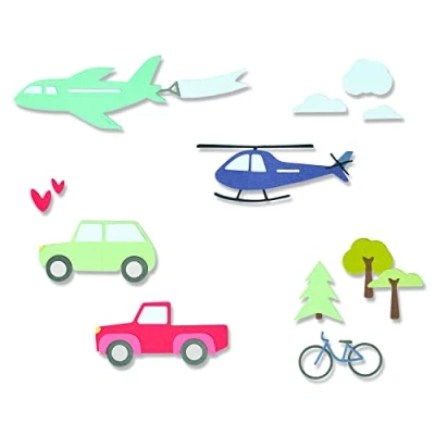 TRANSPORT COLLECTION – The Transport Collection Thinlits Die set has just landed at Sizzix! Transport your crafting into beautiful projects this season. This Thinlits Die set by Jamie Steel includes a helicopter, an airplane and more! It also comes with dies to create clouds, trees and hearts! This is the perfect set for creating a transportation scene in your makes. Use this die-cutting set to create bunting, cards and home décor projects. This Transport collection works with the Neutral Cardstock from the Sizzix Surfacez range (663780). CUT A VARIETY OF MATERIALS - Thinlits dies allow you to cut intricate designs from a single sheet of paper, card, metallic foil, vellum, shrink plastic and stencil film. IDEAL FOR EVERY CREATIVE PURSUIT - Thinlits dies come in a variety of beautiful shapes and sizes, to add a special touch to all your paper crafting & stencilling projects. COMPATIBILITY - Compatible with Sizzix Big Shot, Sizzix Big Shot Express, Sizzix Big Shot Foldaway, Sizzix Big Shot Plus & Sizzix Big Shot Pro APPROXIMATE DIE CUT –9.5cm x 4.1cm - 0.3cm x 0.3cm