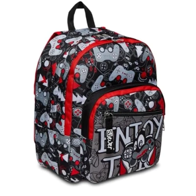 SJ EVER School Backpack Double Compartment Backpack, Black Red Maxi Capacity 31 Lt Fantasy Gaming Elementary School, Middle Black, Taglia unica,