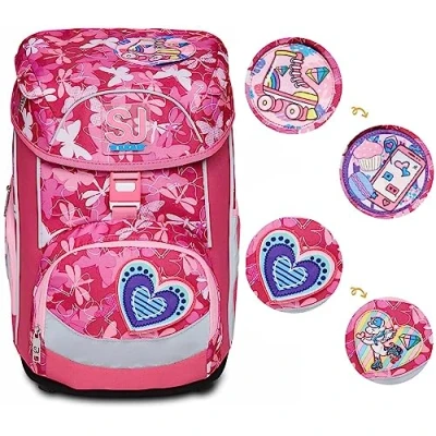 SJ GANG Backpack, UPDOWN BOX LADY CHIFFON Eco friendly Ergonomic Knapsack, For 1st Grade Kids School, Sport, Free Time, with Side Pockets, many Compartments, Shoulder Straps Adjustment System