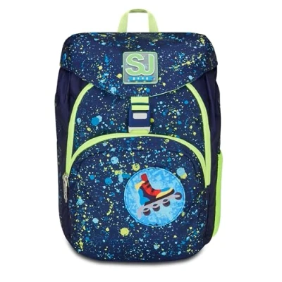 SJ Gang Mocrolight School Backpack, Green, Fluo Snow, Monoscompartment with Magnetic Buckle Opening, Adjustable Waist Strap, Flip System on Front Pocket, Backpack Elementary, Medium, Child, Boy,