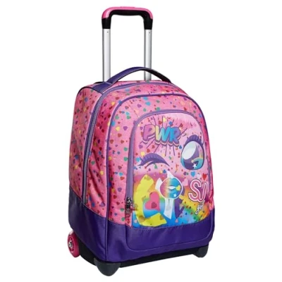 SJ GANG Rolling backpack, Wheeled Book Bag, 2 in 1, Backpack + Trolley, For Teen, Girls&Boys, School, Sport, Free Time, Laptop Sleeve, Italian Design, multicolor with Faces!