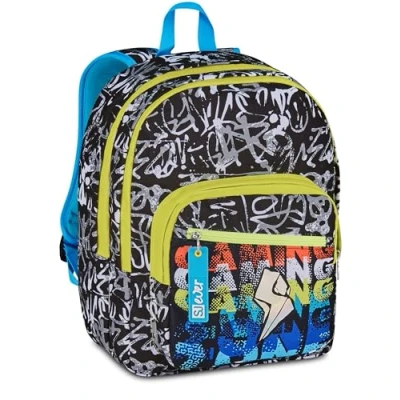 SJ GANG STYLE JAM Ever Double Compartment Backpack, Black, Bottle Pocket, Maxi Capacity, Pre shaped Backrest, Elementary School Child, Taglia unica, modern