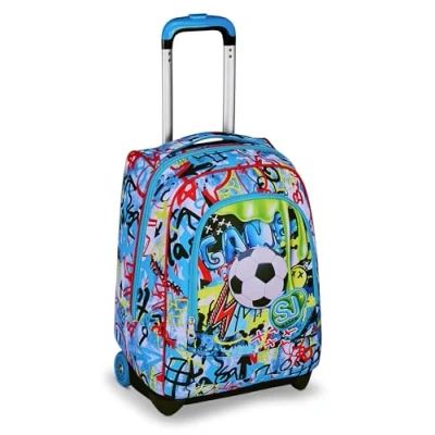 SJ GANG STYLE JAM School Trolley Fixed, Blue, 2 in 1, Double Use, and Backpack, Elementary Child, Taglia Unica, Modern
