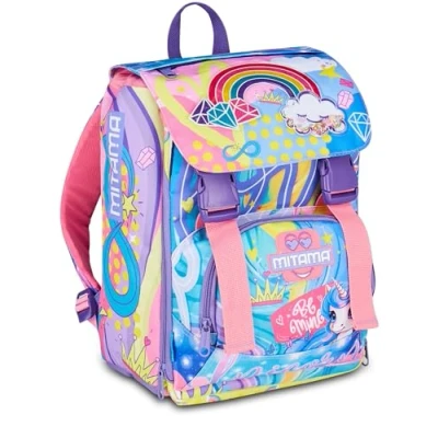 SJ Seven Mitama 4 Zip Expandable Backpack, Rainbow Dream, lilac, Maxi Capacity, Double Compartment, Pre shaped Backrest, Girl, Elementary School, Taglia unica, Casual