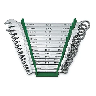 15 PIECE WRENCH SET INCLUDES: SuperKrome 12 Point Metric Combination Wrenches ? 8mm, 9mm, 10mm, 11mm, 12mm, 13mm, 14mm, 15mm, 16mm, 17mm, 18mm, 19mm, 20mm, 21mm, and 22mm packed in a wrench rack DURABLE SUPERKROME FINISH: High polish SuperKrome plating results in a showroom finish, providing long life and maximum corrosion resistance for your 12-Point Combination Chrome Wrenches MAXIMUM PRECESSION: I-Beam handle with revolutionary 6 pawl technology distributes added force evenly for superior strength and durability. 1.7 deg. arc swing of 6-Point Combination Chrome Wrench provides maximum precision and power in tight spaces WRENCH RACK INCLUDED: This 15-piece wrench set is packaged in a locking wrench rack, which holds the wrenches in place using a unique friction-fit design for safe, secure storage International products have separate terms, are sold from abroad and may differ from local products, including fit, age ratings, and language of product, labeling or instructions., Weight: 4.65 pounds, Manufacturer: SK Hand Tools