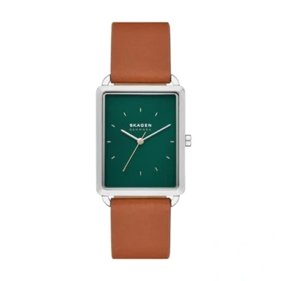 This Skagen Hagen Analogue Watch for Men is the perfect timepiece to wear or to gift. It's Silver Rectangular case combined with the comfortable Brown Leather watch band will ensure you enjoy this stunning timepiece without any compromise. Operated by a high quality Quartz movement and water resistant to 5 bars, your watch will keep ticking. This rectangular watch captures the spirit of Danish design and embodies a legacy of clean lines. High quality 21 cm length and 20 mm width Brown Leatherl strap with a Buckle Case measurment: 29 X 36 mm,case thickness: 7 mm, case colour: Silver and dial colour: Green