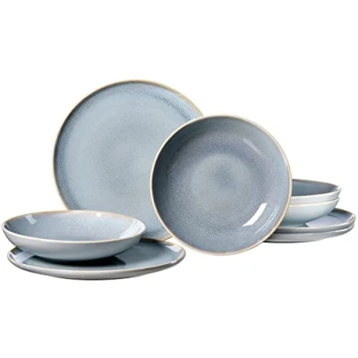 Consists of: 4 flat plates (26.5 cm diameter), 4 deep plates (21.5 cm diameter) Material: porcelain Dishwasher safe For 4 people