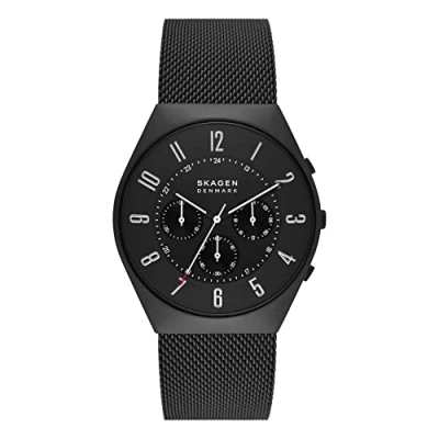 Skagen Watch for Men Grenen Chronograph, Quartz Chronograph movement, 42mm Midnight Recycled Stainless Steel (At Least 50%) case with a Mesh strap, SKW6841