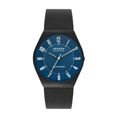 Skagen Watch for Men Grenen Solar Powered, SolarPowered Three Hand movement, 37mm Midnight Recycled Stainless Steel (At Least 50%) case with a Mesh strap, SKW6837
