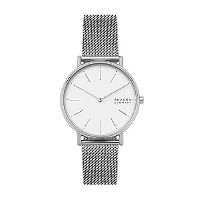 38mm case, 18mm band width, mineral crystal, Quartz movement with 2-hand analog display, imported Round stainless steel case, with a white dial Silver, stainless steel bracelet Water resistant up to 30m: Will withstand splashes in water