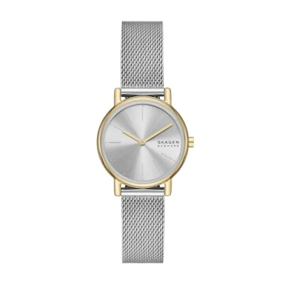 30mm case, 14mm band width, mineral crystal, Quartz movement with 2-hand analog display, imported. Round stainless steel case, with a white dial. Silver, stainless steel mesh band. Water resistant up to 50m: Wearable while swimming in shallow water.