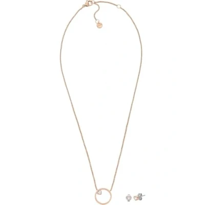 Skagen Women's Kariana Rose Tone Stainless Steel Combo Necklace and Earrings Set, SKJB1018SET
