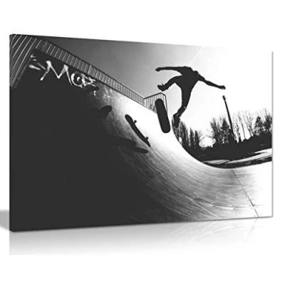 Skateboard Canvas Wall Art Picture Print. Quality You'll Love With Archival Grade Materials & Vivid Colours . This Beautiful Canvas Wall Art Will Brighten Up the decor in your Home, Office, Living Room, Bedroom, Nursery & even Bathrooms! FRAMED & READY TO HANG - Hand Made For You & Framed On Warp Free 18mm Kiln Dried Solid Pine Frames AMAZING QUALITY CANVAS ART - Genuine HP Vivera UV Resistant Pigment Inks Ensuring You Get The Highest Quality, Vibrant, Accurate Colours! GUARANTEED to brighten up your home and walls, don't settle for dull or inferior/poor print quality! 30 DAY MONEY-BACK returns policy. Canvas Print Supplied Ready To Hang On a Nail In Your Wall -Manufactured & Packed in Secure Cardboard Packaging GENUINE PANTHER PRINT PRODUCT - Premium Quality Canvas Prints with Archival Grade Materials and Vivid Colours available from the UK's leading canvas seller - Panther Print
