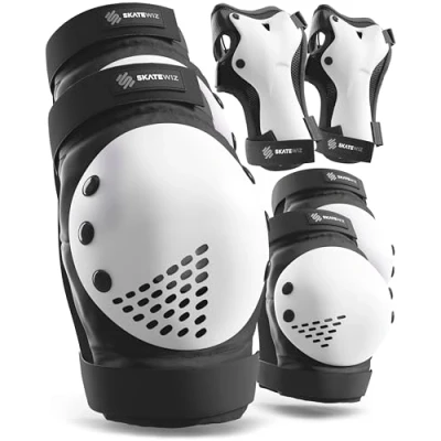 SKATEWIZ Knee and Elbow Pads Adult Skating Scooter SMASH Size L/XL Black White Wrist Guards Skate