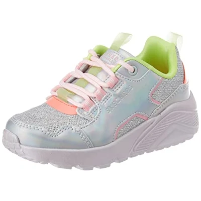 Skechers 310483L SMLT Sneaker, Silver Textile/Multi Trim, 6 UK