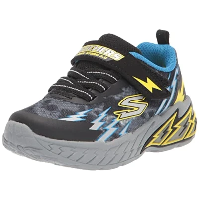 SKECHERS 400150N BKBL TRAINERS, BLACK TEXTILE/SYNTHETIC/BLUE & YELLOW TRIM, TODDLER 6 UK