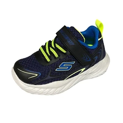 Skechers 403887N NVLM Sneaker, Navy Textile/Black & Lime Trim, 4 UK