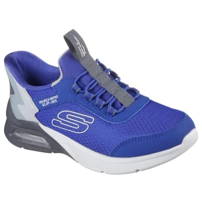 Skechers Boy's Microspec Max Brisk Stripe Sneaker, Blue Textile/Synthetic/Gray Trim, 10 UK
