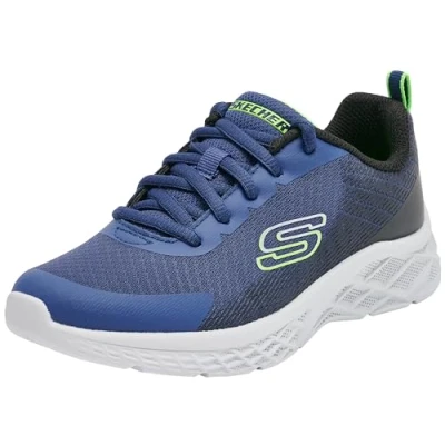 Skechers Boys Trainers, Navy Textile/Synthetic/Black & Lime Trim, 11.5 UK