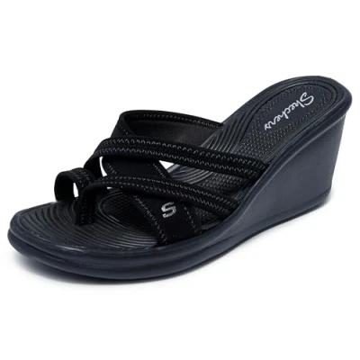 The Beautiful People thong from Skechers will easily be your new favorite choice for everyday use; The wedge offers superior comfort with its textured, molded footbed, and the strappy design looks cool and casual with everything Ethylene vinyl acetate wedge Le string Beautiful People de Skechers sera facilement votre nouveau choix préféré pour un usage quotidien; La semelle compensée offre un confort supérieur avec sa semelle texturée moulée et le design à lanières est cool et décontracté avec tout Stripy thong
