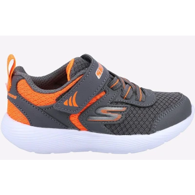 Skechers DYNA LITE Sneaker, Charcoal Synthetic/Textile/Orange Trim, 4 UK Child