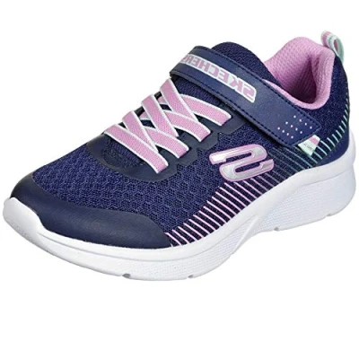 Skechers Girl's Microspec Sneaker, Navy Mesh/Lavender & Mint Trim, 2.5 UK Child