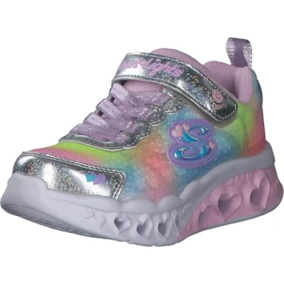 Cushioned midsole with 3 D sculpted light up hearts Flexible rubber traction outsole Slip on style in a stretch laced front