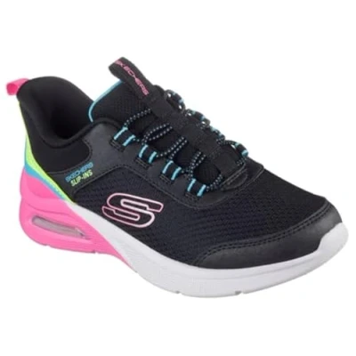 Skechers Girl's Microspec Max Color Trifecta Sneaker, Black Synthetic/Multi Trim, 13 UK