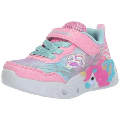 Skechers Girls Trainers, Pink Sparkle Mesh/Turquoise Trim, 2.5 UK