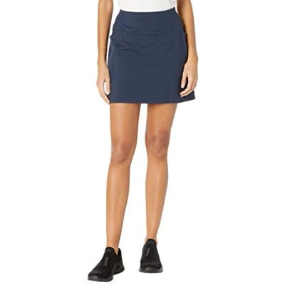 Double layer compression high-waisted waistband Exterior side pockets Flatlock seams for a chafe-free experience Breathable mesh inner short with 4.5 inch inseam 16 inch skirt length Reflective Skechers diamond logo detail