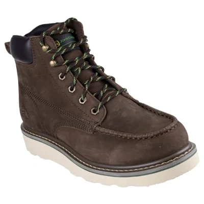 AmazonFrom the Skechers x John Deere collection Lace-up leather upper with padded collar Classic moc toe work boot design Skechers Air-Cooled Memory Foam cushioned comfort insole Goodyear welt construction for added durability