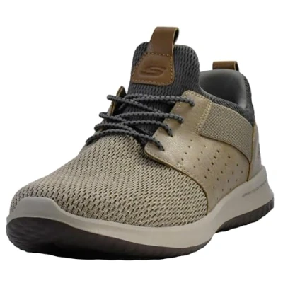 Skechers Men's Classic Fit delson camden Sneaker, Beige Taupe Mesh W Synthetic Tpe, 7.5 UK Wide