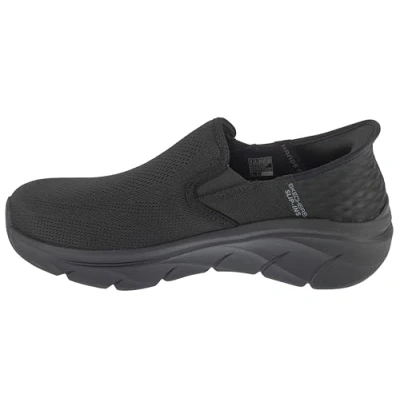 Skechers Hands Free Slip-ins for an easy fit. Exclusive Heel Pillow holds your foot securely in place Skechers Air-Cooled Memory Foam cushioned comfort insole Relaxed Fit for a roomy comfort fit at toe and forefoot Machine Washable, Vegan, Well-cushioned midsole; felexible traction outsole; Wide Fit