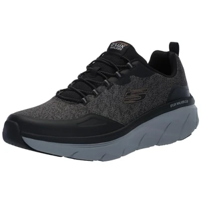 Skechers Men's D'lux Walker 2.0 Steadyway Sneaker, Black Dark Grey, 6.5 UK
