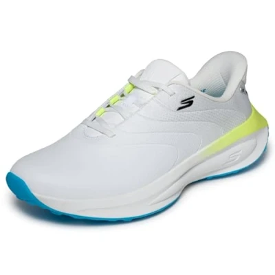 Skechers Men's GO Golf Synthetic Upper Lace Up Shoe, White/Blue/Yellow, 9 UK