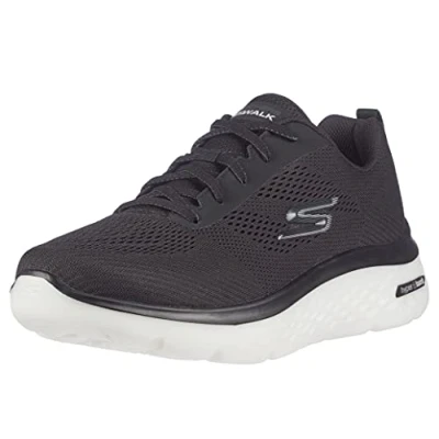 Skechers Men's GO Walk Hyper Burst Sneaker, Black Textile/Black & White Synthetic Trim, 6 UK