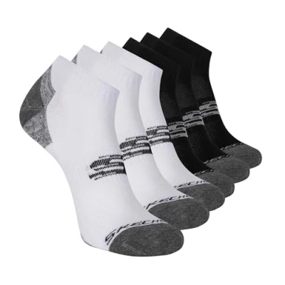 STYLING: These socks feature a classic quarter crew design, pairing effortlessly with sneakers and shoes. The sporty style includes breathable mesh for enhanced ventilation. Ideal for workouts, sports, or staying comfortable during everyday errands. FEATURES: Designed for all-day comfort, these socks boast a cushioned footbed and comfort toe to keep your feet happy. The Y-heel gore enhances fit and flexibility, while the soft material ensures a snug, supportive feel with every step. SIZING: Available in size 10-13, these socks are designed to fit most men's shoe sizes. Their stretchy fabric ensures a snug yet comfortable fit that stays in place throughout the day. MATERIALS & CARE: Crafted from 98% polyester and 2% spandex, these socks are soft, breathable, and durable. To keep them in top condition, machine wash warm with like colors, tumble dry on low heat, and avoid ironing. SKECHERS: Skechers combines performance and style with innovative footwear and accessories designed for comfort. Trusted by millions, Skechers is known for its commitment to quality and its mission to keep you moving in style and ease.