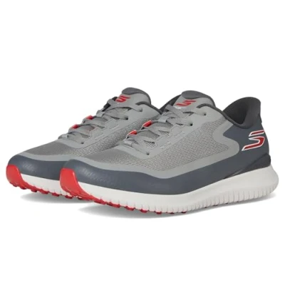 BREATHABLE MESH UPPER: Featuring a breathable mesh upper with synthetic overlays, these Skechers GO GOLF Flight shoes keep your feet cool and comfortable during your round. SPIKELESS TRACTION: The flexible rubber outsole has low-profile cleats for excellent grip without damaging the course. Perfect running shoes for men who love golf. LIGHTWEIGHT CUSHIONING: Ultra-lightweight ULTRA FLIGHT cushioning and a Skechers GOGA MAX high-rebound insole provide responsive comfort. Ideal mens running shoes for the golf course. ADJUSTABLE LACES: This spikeless golf shoe features adjustable laces for a customized fit. Great sneakers for men who want performance and style.