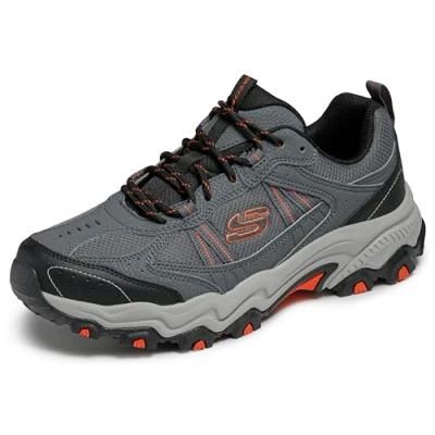 Skechers Cushioned comfort insole with memory foam Durable outdoor upper material Traction rubber outsole Duraleather and mesh upper