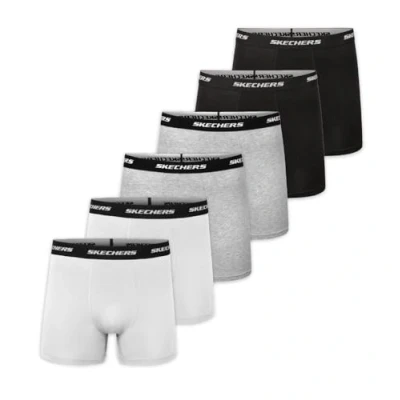 Skechers Men’s Tagless Boxer Briefs 6 Pack Athletic Fit, Moisture Wicking Cotton With Contoured Pouch, Breathable Multipack, White/Grey/Black, L