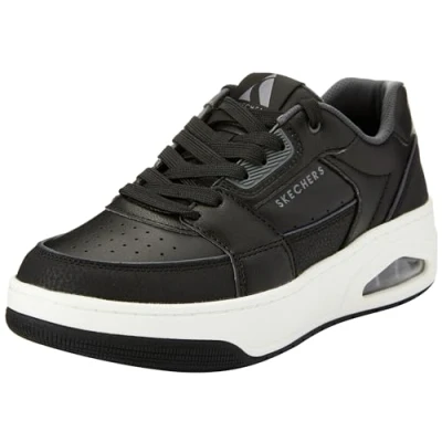 Skechers Men's Uno Court Low Post Trainers, Black Leather/Duraleather/Charcoal Trim, 6 UK