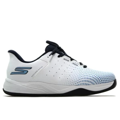 Skechers Men's Viper Court Reload Pickleball Shoes, White Synthetic/Textile/Blue Trim/Navy Trim, 9.5 UK
