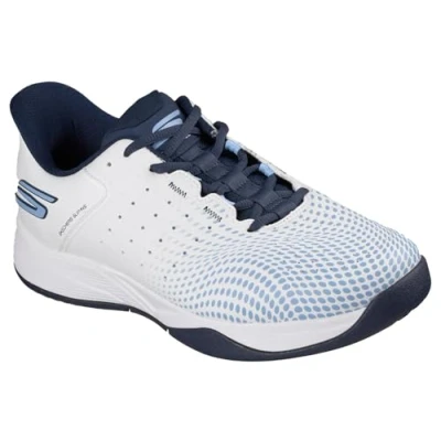 Skechers Men's Viper Court Reload Pickleball Shoes, White Synthetic/Textile/Blue Trim/Navy Trim, 9 UK