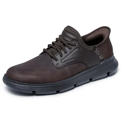 Wide fit Skechers Hands free slip-ins for an easy fit with exclusive heel cushion keeps your foot securely in place Smooth leather upper with stretch laces and plain toe Skechers Air Cooled Memory Foam Comfort Insole Skechers Goga Mat Arch cushioning for added support