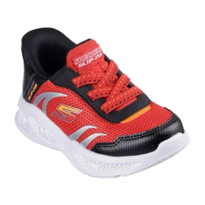 Skechers Meteor Lights Brisk Beams Sneaker, Red Synthetic/Textile/Black & Orange Trim, 5 UK Child