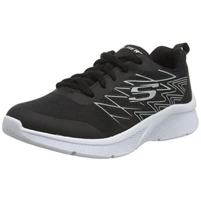 Skechers MICROSPEC Quick Sprint Sneaker, Black Textile/Black & Silver Trim, 10 UK