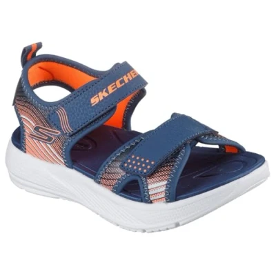 Skechers Microspec Splash Sandal, Navy Synthetic/Gray & Orange Trim, 7 UK Child