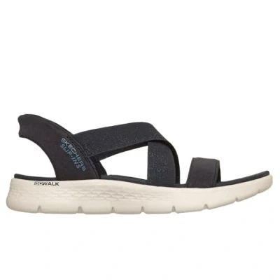 EFFORTLESS SLIP-ON STYLE: Experience the ease of Skechers Slip-ins: GO WALK Flex Sandal - Glimmer slip on shoes for women with a strappy, shimmery knit upper and slip-on design. CUSHIONED COMFORT: Contoured Goga Mat footbed and lightweight ULTRA GO cushioning provide all-day comfort for your feet. DURABLE TRACTION: Durable dual-density traction outsole offers stability and grip for walking or casual wear. EASY CARE: These womens slip on shoes are machine washable for effortless cleaning and maintenance.