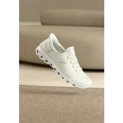 Skechers Sport Women's Glide Step Pursuit Hands Free Slip ins Sneaker, White Mesh/Silver Trim, 5.5 UK